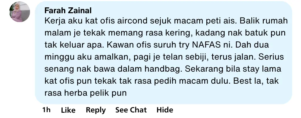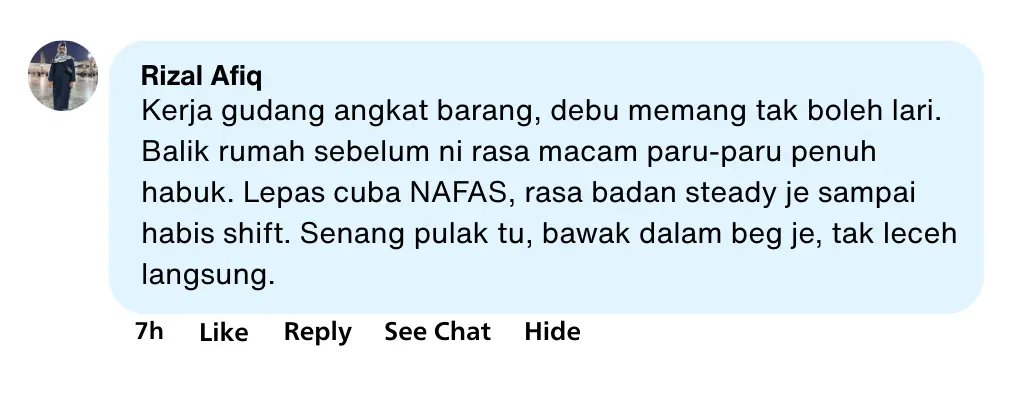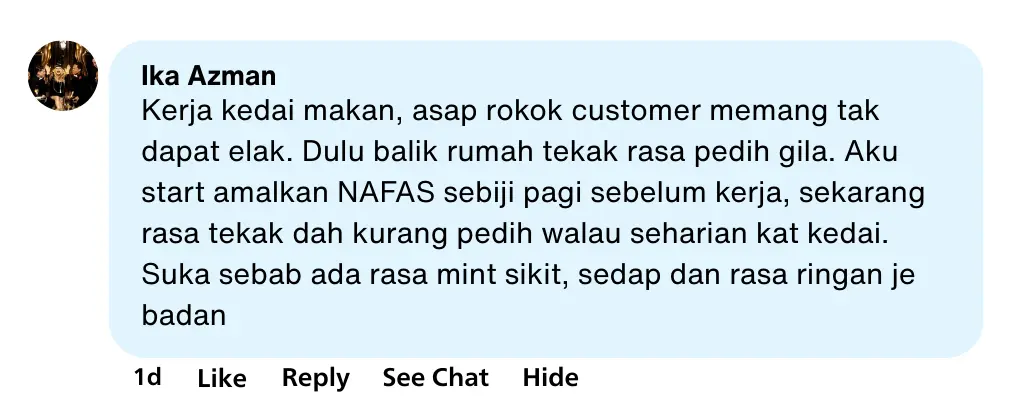 “Kesan Konsisten NAFAS ✔️ Nafas Lebih Lega, Badan Rasa Segar & Tenaga Kekal Sepanjang Hari”