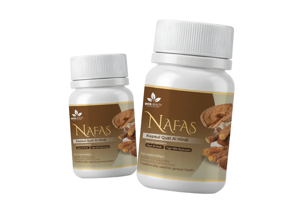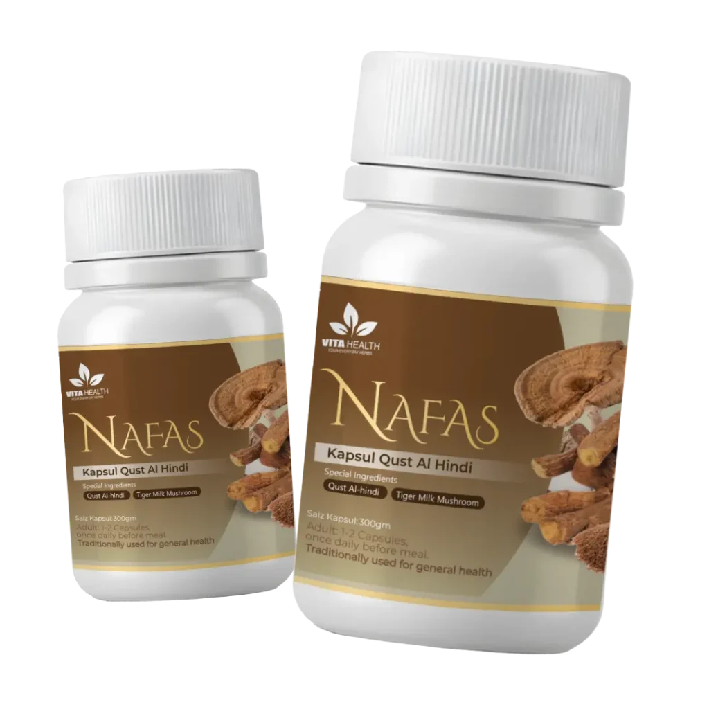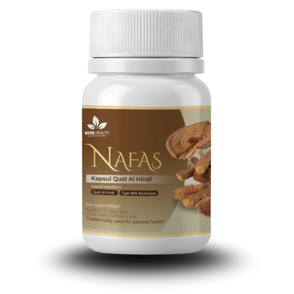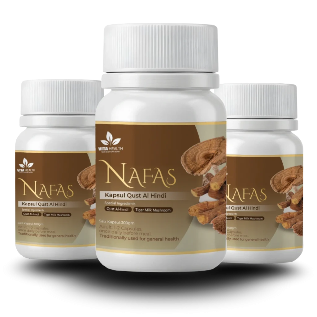 NAFAS ialah kapsul herba 7-dalam-1 gabungan Qust Al-Hindi, Tiger Milk Mushroom, daun pegaga, licorice, halia, bawang putih dan daun pudina. Dirumus untuk menyokong keselesaan pernafasan dan pertahanan semula jadi badan.